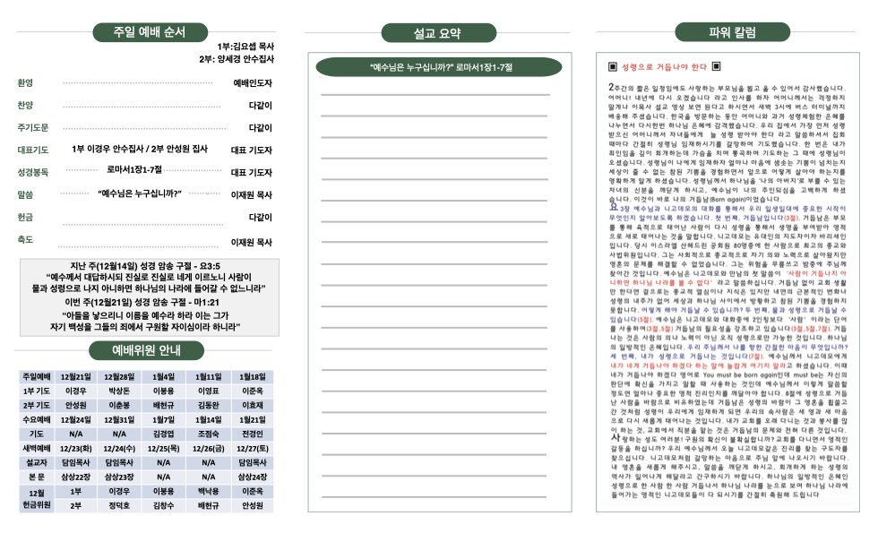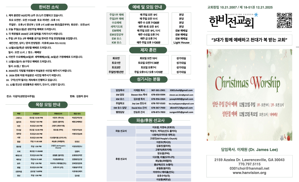 12월 21일 교회주보 Publish on December 21,2025 | 한비전교회 34 페이지 정보 작성자 한비전교회 댓글 0건 조회 34회 작성일 25-12-21 22:21 목록 본문 교회주보 다음글12월 21일 교회주보 25.12.21 댓글 0 댓글목록 등록된 댓글이 없습니다. 목록