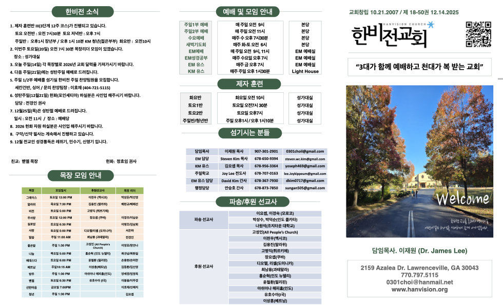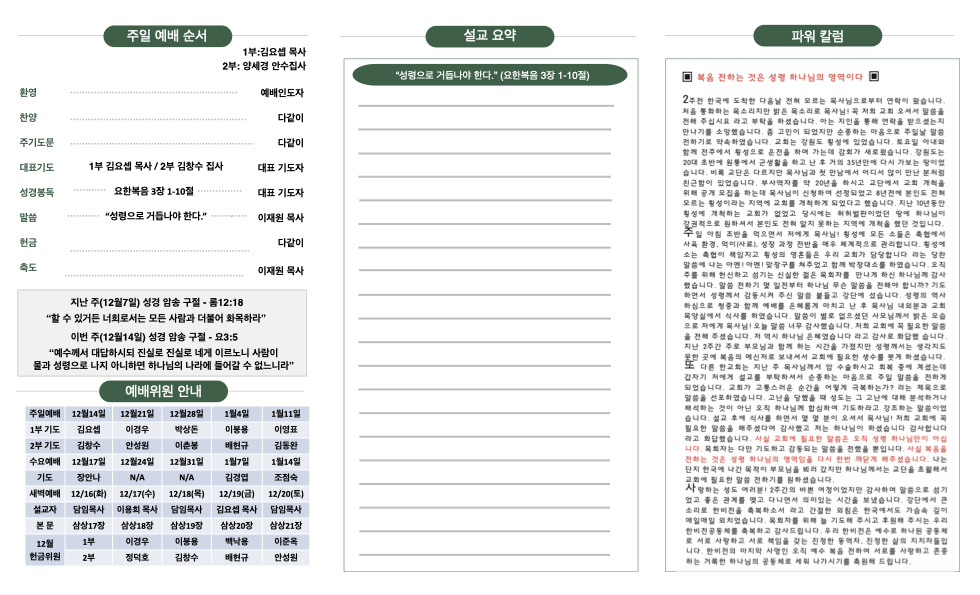 12월 14일 교회주보 Publish on December 13,2025 | 한비전교회 57 페이지 정보 작성자 한비전교회 댓글 0건 조회 57회 작성일 25-12-13 08:59 목록 본문 교회주보 다음글12월7일 교회주보 25.12.08 댓글 0 댓글목록 등록된 댓글이 없습니다. 목록