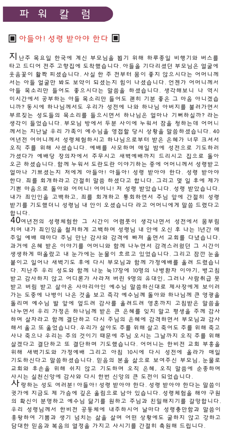 "아들아! 성령 받아야 한다" (12/03/2025) Publish on December 03,2025 | 한비전교회