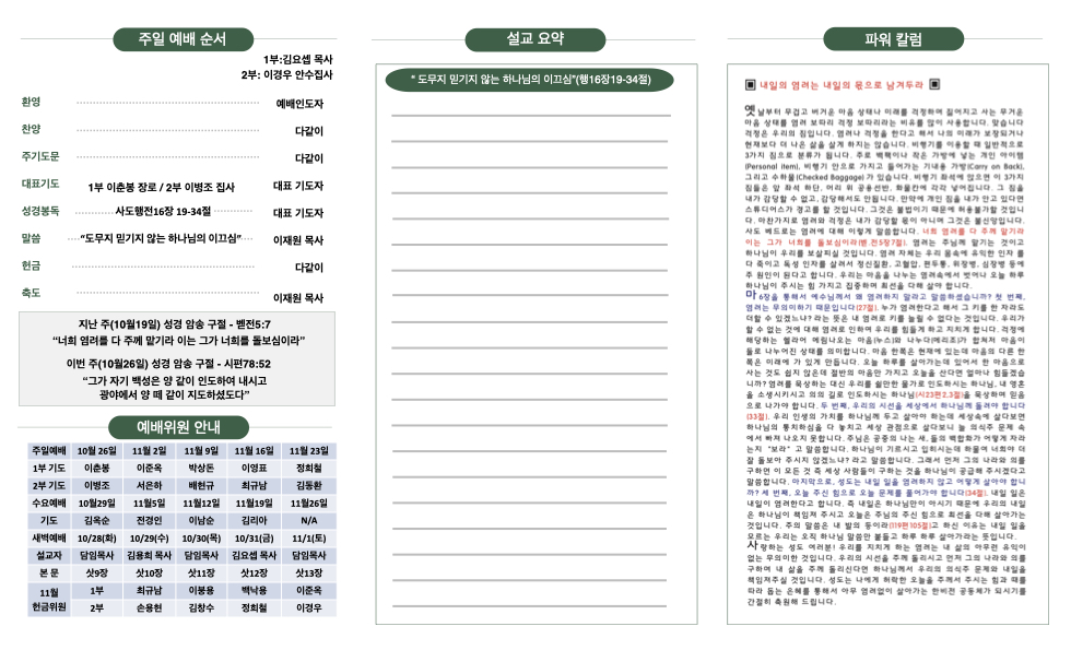 주보 10월26일 주보 Publish on October 25,2025 | 한비전교회 79 페이지 정보 작성자 한비전교회 댓글 0건 조회 79회 작성일 25-10-25 15:26 목록 본문 교회주보 다음글10월 19일 주보 25.10.18 댓글 0 댓글목록 등록된 댓글이 없습니다. 목록