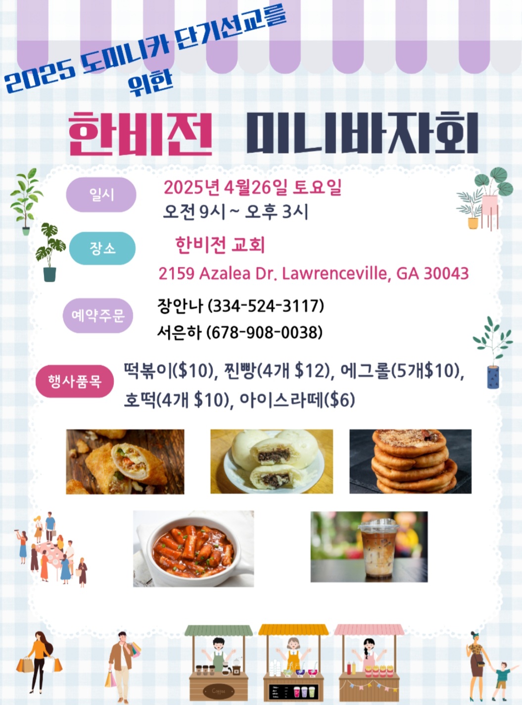 자료게시판 2025 미니바자회 메뉴 Publish on April 21,2025 | 한비전교회 페이지 정보 작성자 한비전교회 댓글 0건 조회 399회 작성일 25-04-21 14:59 목록 본문 한비전 교회 이전글가을학기 한비전 한글학교 개강 25.08.02 다음글한비전 교회 목장일지 양식 25.03.17 댓글 0 댓글목록 등록된 댓글이 없습니다. 목록